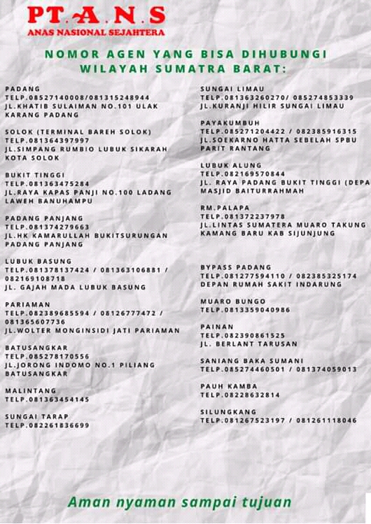 Dulu nya Po ini sempat jaya nya di era.90 an dg membuka rute dr Perawang, Aceh, Medan, Sampai Denpasar... kini tinggal rute Jakarta-Bandung yg tersisa/masih aktif.. selain itu sudah tutup sejak lama.. kini PT A.N.S sejak 2018 bangkit kembali dengan menghadirkan armada baru Mercedes Benz OH 1526 NG dengan karoseri Morodadi Prima dengan berbody Grand Tourismo, Ventura, dan Patriot. ok cekidot langsung saja tarif/ongkos nya sbb :